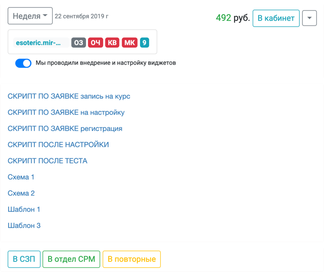 Воспользуйтесь виджетами в профиле клиента: добавьте любую связку с вашими внешними системами, например, информацию о товаре из интернет-магазина, удобную ссылку, заранее настроенные сценарии и т. д.