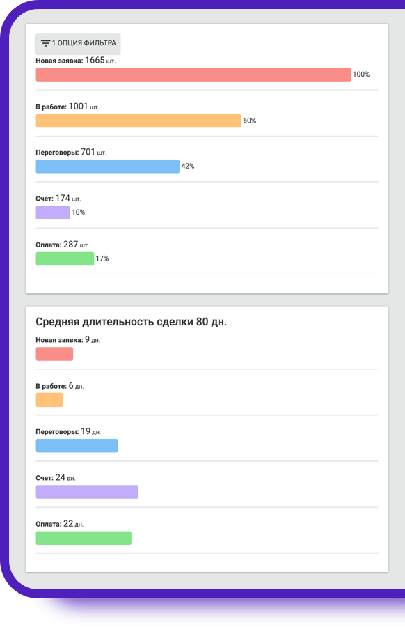 Все карточки клиентов теперь создаются автоматически, что уменьшает человеческий фактор упущения контакта с клиентом. Оцифрованный процесс продаж стимулирует менеджеров ответственно выполнять свои задачи по каждой карточке, ведь в отчетах CRM видна полная картина их действий. Это дополнительный эмоциональный плюс для повышения продаж.