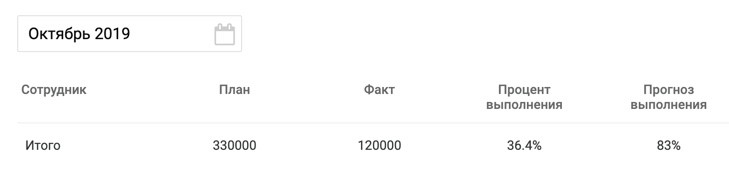 Определяйте общий план на месяц, дополнительно можете ставить план по каждому менеджеру. Отслеживайте в реальном времени как компания движется относительно плана.