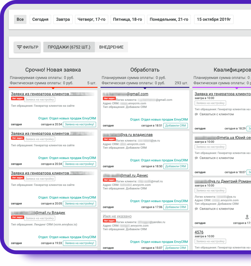 EnvyCRM дала нам возможность собирать всё в едином месте в облаке и иметь доступ ко всем контактам. А прозрачность системы позволяет посмотреть в любой момент, на каком этапе сейчас находятся заявки.